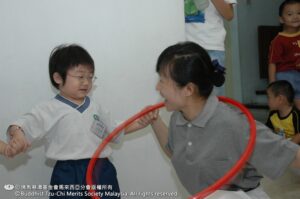 園長致歡迎詞時表示幼稚園主旨在培養良好的爲人之道,學習正確的生活方式。五嵗班與六嵗班的舊生們則以一首“快樂的小天地”來歡迎新生們。之後,學生與家長們被分成 兩組進行攻佔遊戲。六嵗班先進行的是“環環相扣”,所有的家長與孩子們必須手拉手,心連心圍成一個圓圈,才能齊心合力的把呼拉圈傳給每一個人。 其中一位家長劉家裕先生分享說自己最近比較忙,又好長的時間沒有牽孩子的手了,所以這樣的活動,讓他覺得很感動。他也認爲孩子來了慈濟幼稚園學會了自立,生活有條理,待人接物都很好,也培養了許多好習慣。張瑞蘭女士則表示自己平時在家裏很嚴肅,這次的攻佔遊戲讓孩子發現媽媽好玩的一面,孩子還要求她,回去后一家人要重玩這個遊戲。