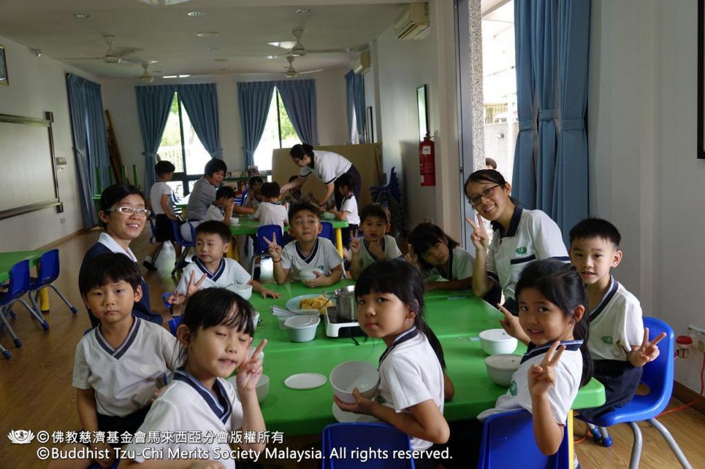 同一天,六岁勇气班的小朋友化身为“小厨师”,为师长及五岁、四岁班的弟弟妹妹准备一顿充满爱心的团圆饭。孩子们拔玉米、切萝卜,虽然是第一次下厨,仍勇敢地拿起刀具,学习正确的切菜方式。老师张雨芬分享:“有个孩子虽然手被烫到,仍坚持完成任务,因为他们想趁这个机会向全园的老师、师姑及弟弟妹妹表达感恩。”