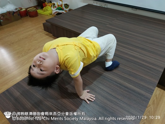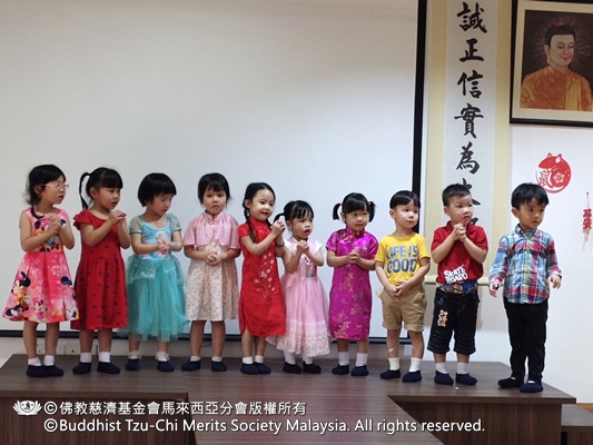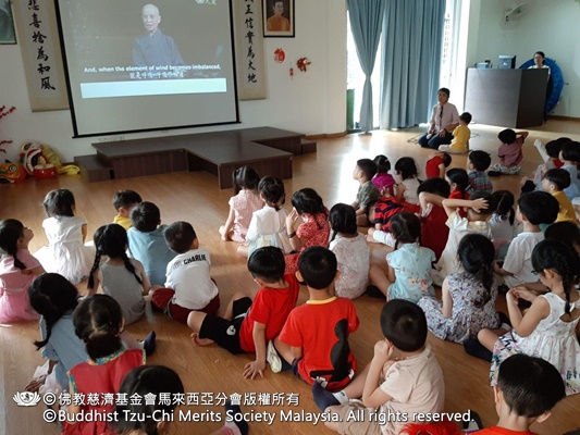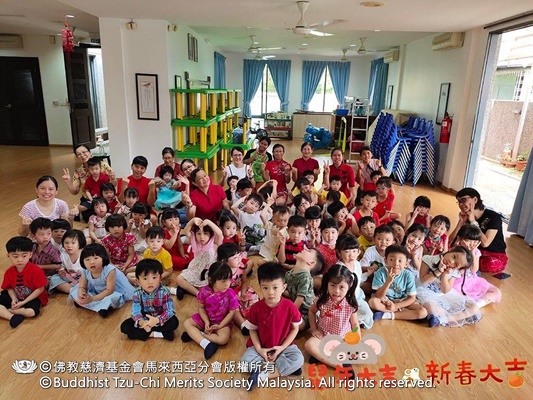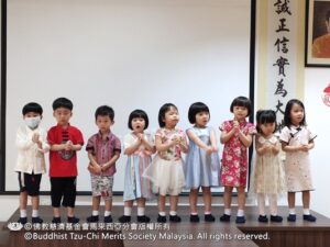 在欢庆之余,老师也带领孩子们聆听证严法师关于传染病的开示,并进行防疫宣导。面对当时逐渐扩散的新型冠状病毒疫情,老师、志工及孩子们一同双手合十,虔诚祈祷疫情早日平息,祈求人心净化、社会祥和、天下无灾。