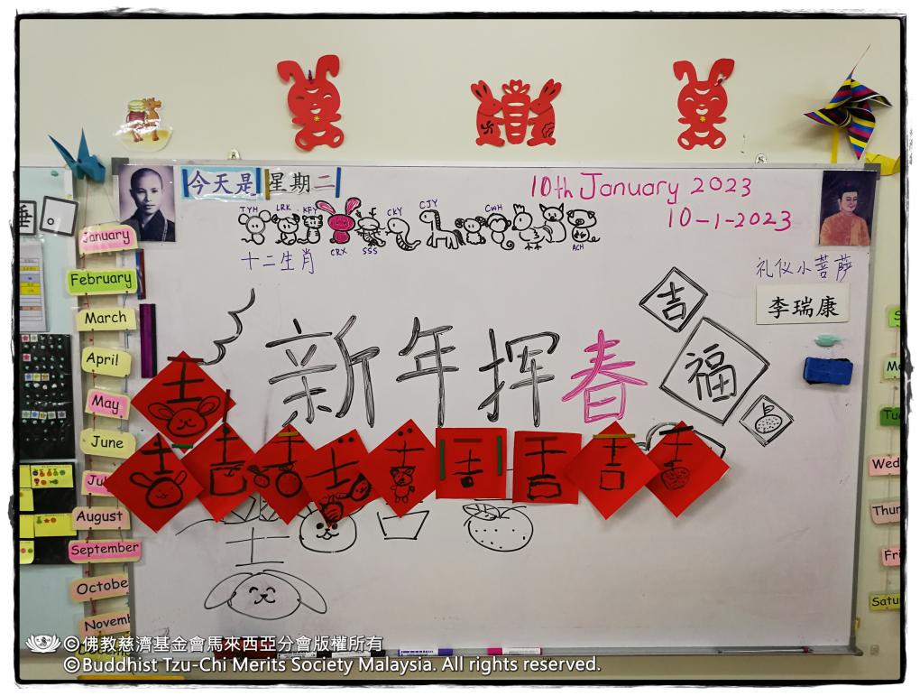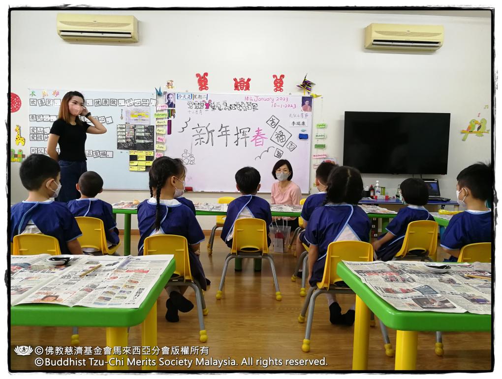 教育志業20230110_新山慈济幼儿园【挥春】 10 Jan Community: myjbselectionmyjbBranch: 馬來西亞分會挥春,是中华民族传承已久的艺术形式。每逢新春,家家户户张贴挥春,既为辞别旧岁,也为喜迎新年。为延续这一文化传统,新山慈济幼儿园于2023年1月10日组织全园幼儿开展了挥春创作活动。 孩子们在红纸上认真书写祝福,再以清雅梅花点缀其间。活动现场洋溢着浓浓的节日氛围,一张张挥春不仅传递出童真的祝愿,也让孩子体验到亲手创作的成就感。他们将这份承载心愿的作品带回家中,更将新春的喜气与文化的韵味融入生活。 返回上一頁 20230108_北海歲末發放 20230111_上供下結_檳城極樂寺慈善醫院