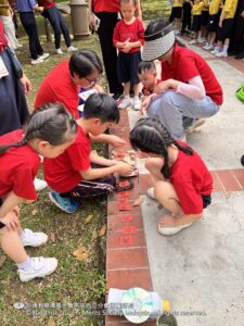 运动会中,家长与孩子携手闯关,通过跑跳、传水游戏等亲子互动,不仅增进了感情,也让孩子们体会到珍惜资源的重要性。此外,孩子们运用树枝、石头和叶子等自然材料创作动物造型,感受大自然的馈赠;而资源分类游戏则进一步加深了他们对环保的认识,培养“爱山、爱水、爱地球”的责任感。