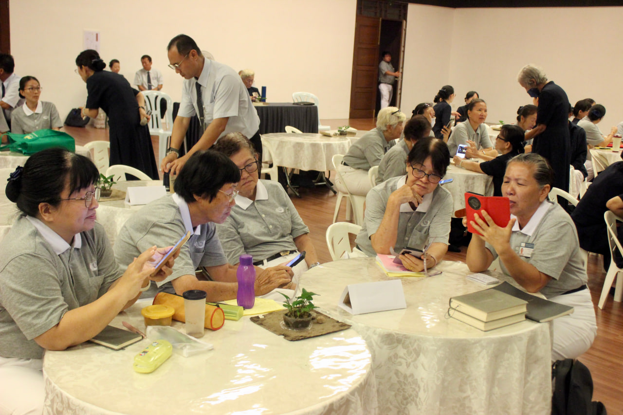 今年法華坡道喜迎新製作的海報,包涵慈濟的緣起、四大志業的點滴、吉打分會及海外的菩薩足跡。黃麗根(慮本)的女兒曾奐珣(懿弘)即是製作這些海報的人,她近期出國留學,麗根師姊毅然承接法華坡道導覽的任務,除了成立導覽的團隊,也希望所有的志工能了解海報的內容。法華坡道是志工與大德要走到靜思堂第二樓的必經之路,靜思堂及海報固然可以無聲說法,但志工們也應了解海報的內容,從學習的過程中更能深入了解慈濟的緣起和各地的感人事跡。奐珣師姊在製作好海報之後,用心將海報的內容和參考鏈接都放在網路上人人能觀看的谷歌文件;今天的共修大家就一起學習如何使用。