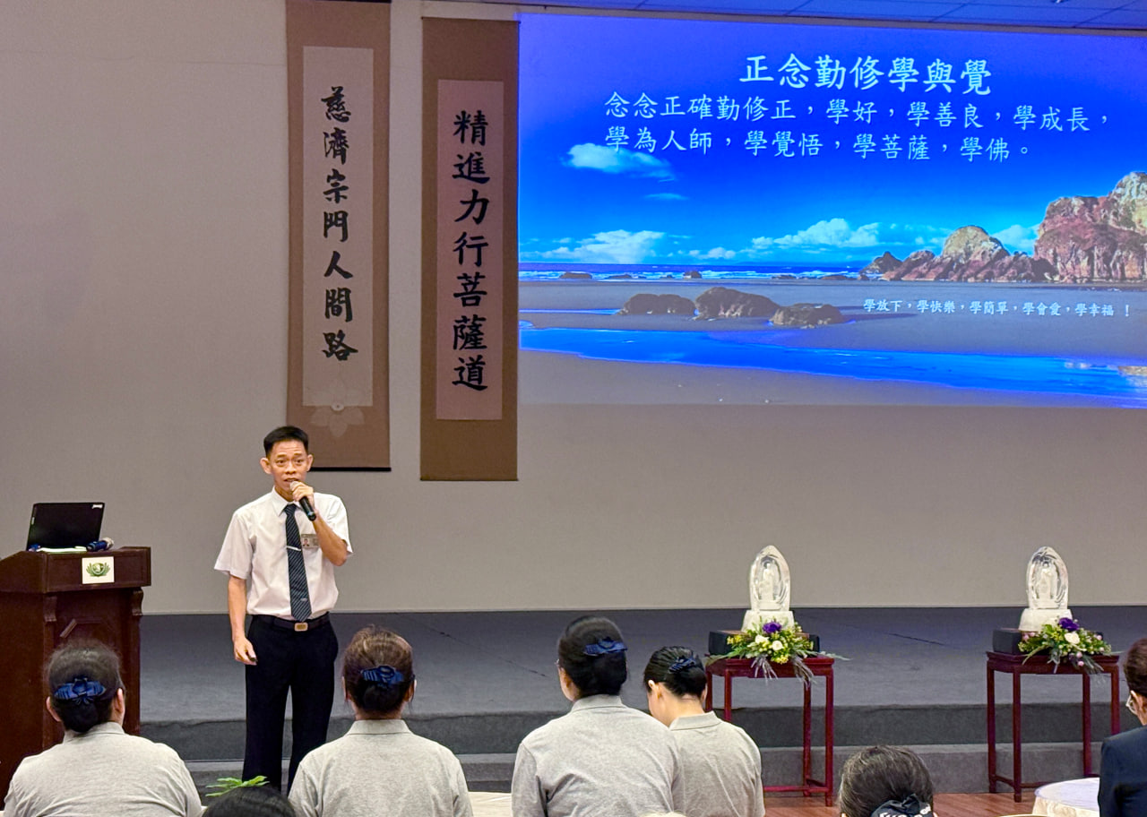 自2025年起,培育組以上人給予大家的歲末祝福主題「正念勤修學與覺,精進力行菩薩道」作為全年大共修的主題;九月的共修重點就在於「正念勤修學與覺」。