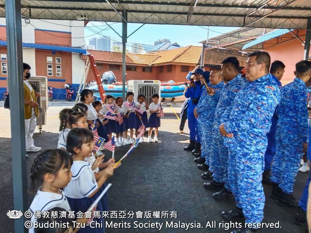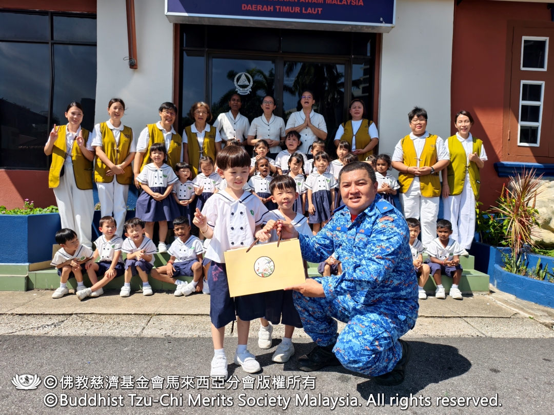 2025年9月22日,槟城慈济幼儿园28名五岁幼儿在7位教职员与7位慈济志工的陪伴下,带着纯真童心与满满祝福,走进民防部队营地,开展了一场融合安全教育与感恩教育的特别行动。
