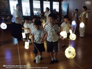 教育志業20251001_吉打慈济幼儿园【幼儿园欢庆中秋节】 01 Oct Community: kdkdBranch: 吉打分會【圆月当空,情意满满】 吉打慈济幼儿园教职员与大爱妈妈携手为幼儿们举办了一场温馨的中秋欢庆活动。孩子们开心地参与传统游戏——猜灯谜,品尝香甜可口的月饼与应节柚子,感受中秋特有的团圆滋味。提着由大爱妈妈指导制作的彩色灯笼,小小灯火,在静思堂各个角落展开一场温馨的灯笼游行。烛光点点映照在孩子们的笑脸,照亮了“感恩、团圆、分享”的节日氛围。中秋,不只是赏月与品味,更是彼此体会传统文化与学习感恩的美好时刻。 返回上一頁 20250930_吉打慈济幼儿园【幼儿参访消防局——消防英雄的一日学习】 20251002_高渊慈济幼儿园 · 欢庆中秋节