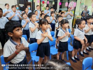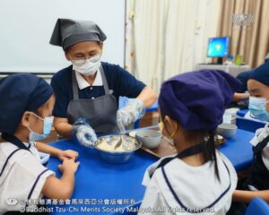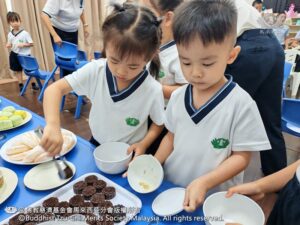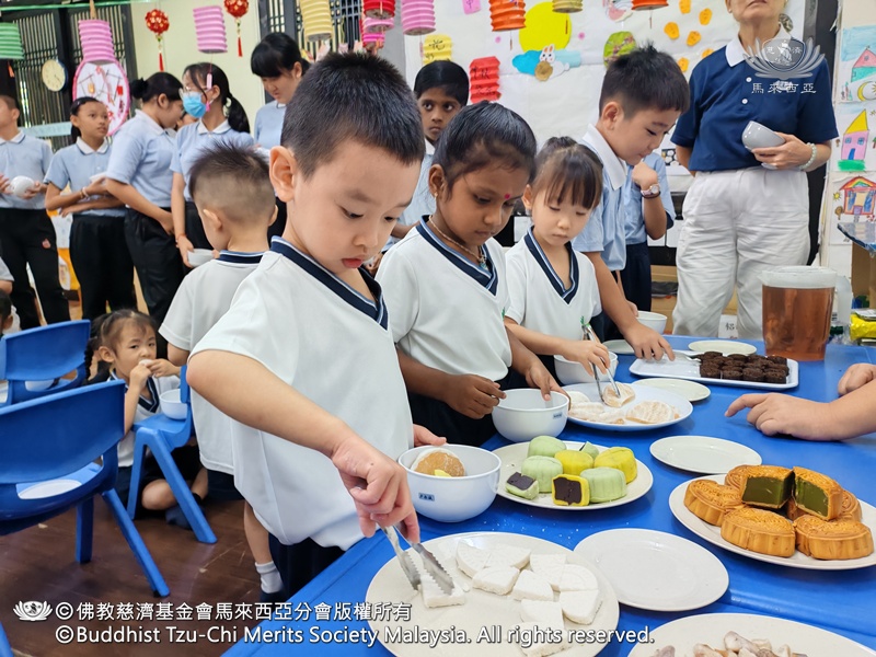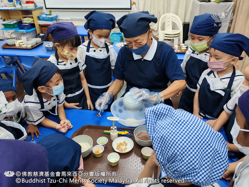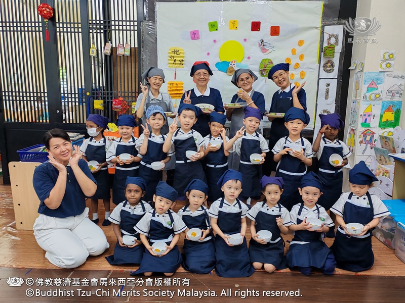 当天,高渊慈济幼儿园洋溢着节日气息。为让孩子们体会传统节日的文化与意义,感恩慈济志工走进校园,陪伴孩子们一起“制作净斯月饼”。