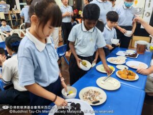 活动开始前,志工们细心地将材料整齐摆放在桌上,准备了电子秤,讲解食材,同时示范如何称量每一种材料。