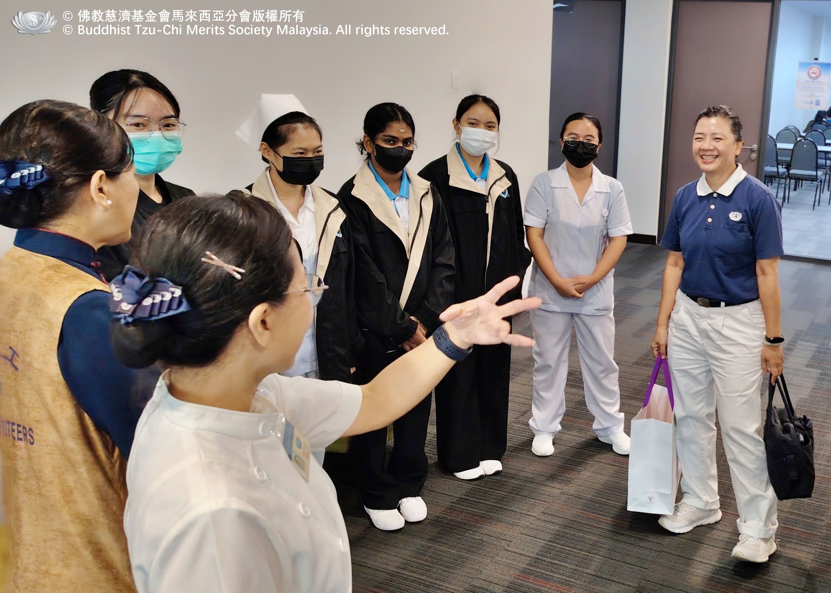 雖然護理生們略顯靦腆,但眼神中流露出的感動與笑意,讓整個教室洋溢著溫馨的人文氣息。