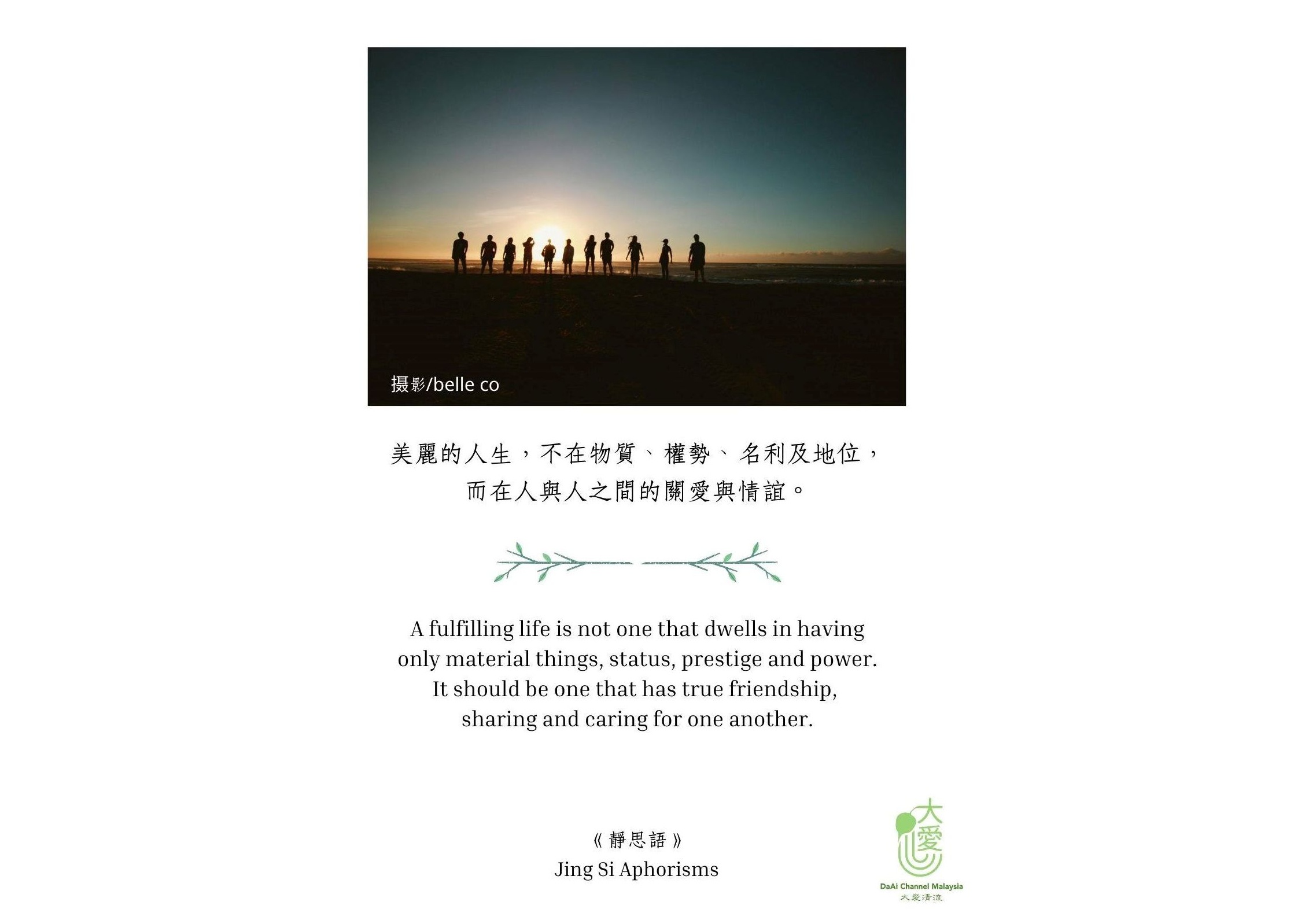 「美滿的人生,不在物質、權勢、名利及地位,而在人與人之間的關愛與情誼。」