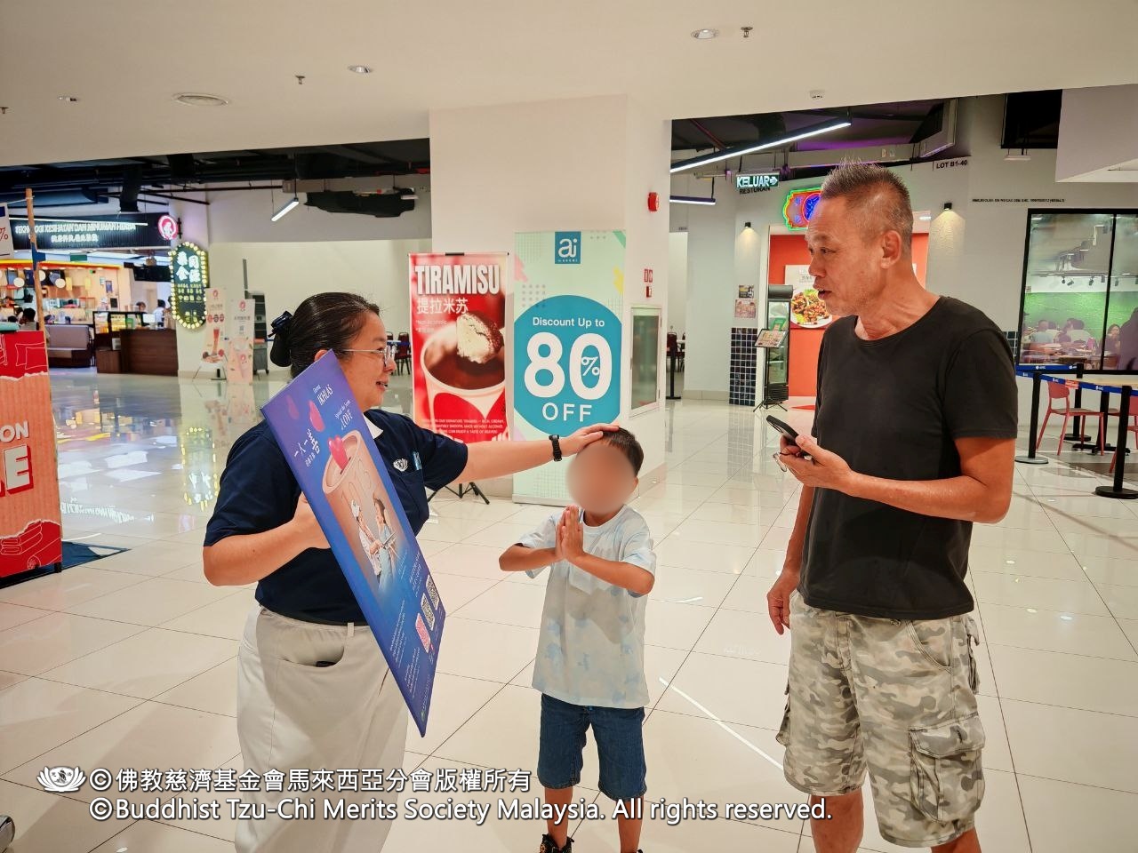 活动首日,志工们满怀热忱地向民众分享“希望教育”。即使怀抱幼儿的母亲,亦不忘驻足付出爱心,展现善念无处不在。陈丽华老师更成为宣导主力,亲切的解说收获了众多回响。同日,志工亦把握因缘,在Cmart等地灵活运用手机向民众介绍,让善的传播不受形式限制。