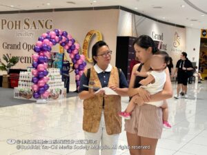 2025年10月11日至12日,慈济志工于发林阳光商城(Sunshine Central Farlim)及周边场域,配合“一人一善”运动,开展了一场温馨的“希望教育”宣导活动。此次活动获得商场管理层的慈悲支持,让志工得以在Sunshine Central设立宣导点,向社会大众介绍慈济全免教育的理念与实践。