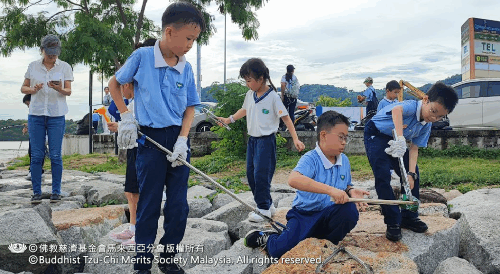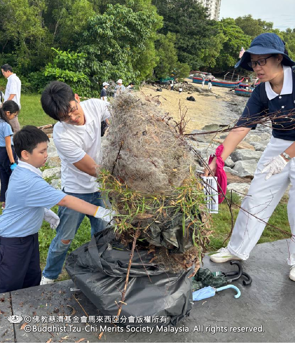 2025年10月12日清晨,细雨中的槟城Persiaran Bayan Indah 2海滩迎来了一群特别的访客——慈济校友亲子人文班的16位家长、19位慈幼慈少与12位志工,共同开展“一人一善,身体力行净滩护海洋”活动。这场原为响应慈济“一人一善”募心活动的课程,最终化作一场深刻的环保实践。
