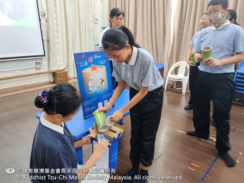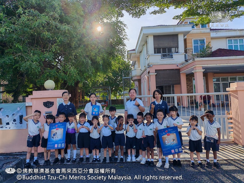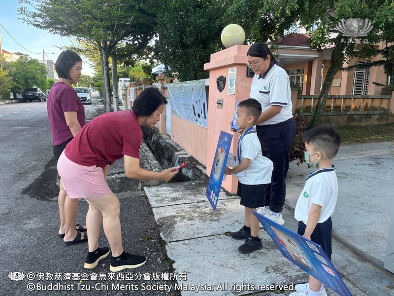 2025年10月13日早晨,高渊慈济幼儿园老师和志工带领学生,于校门口向家长募爱心,以行动传递「 一人一善」的爱与善念。