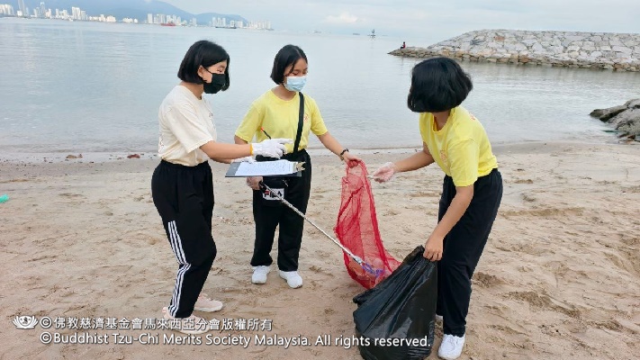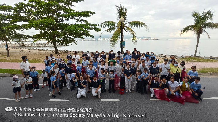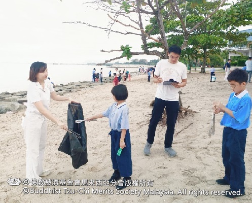 隨後親子隊伍前往海邊淨灘,家長持單記錄,孩子執夾提桶撿拾垃圾,海風拂面,溫馨滿溢。活動中,麗雯師姐邀請三位馬來小弟參與,他們不僅堅持到最後,還主動提醒回收空瓶;三歲萌娃認真護衛海洋動物的家,稚語稚行滿是熱忱;彭亨州游客受此感染,表示歸鄉後要深耕環保事務;害羞的曾泓瑋在父親鼓勵下,勇敢向晨練老伯推廣淨灘活動;一戶遊玩家庭也受邀加入,全家齊心分類撿拾,成為沙灘上的溫暖風景;BAGAN JAYA中學的三位同學結伴而來,直言活動既淨化環境,又增進同學情誼。