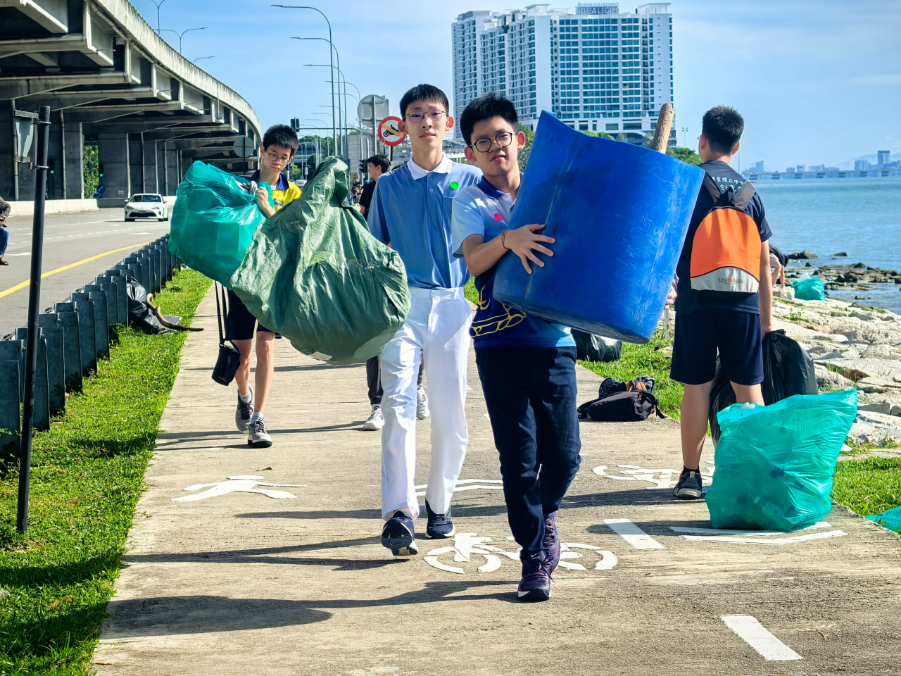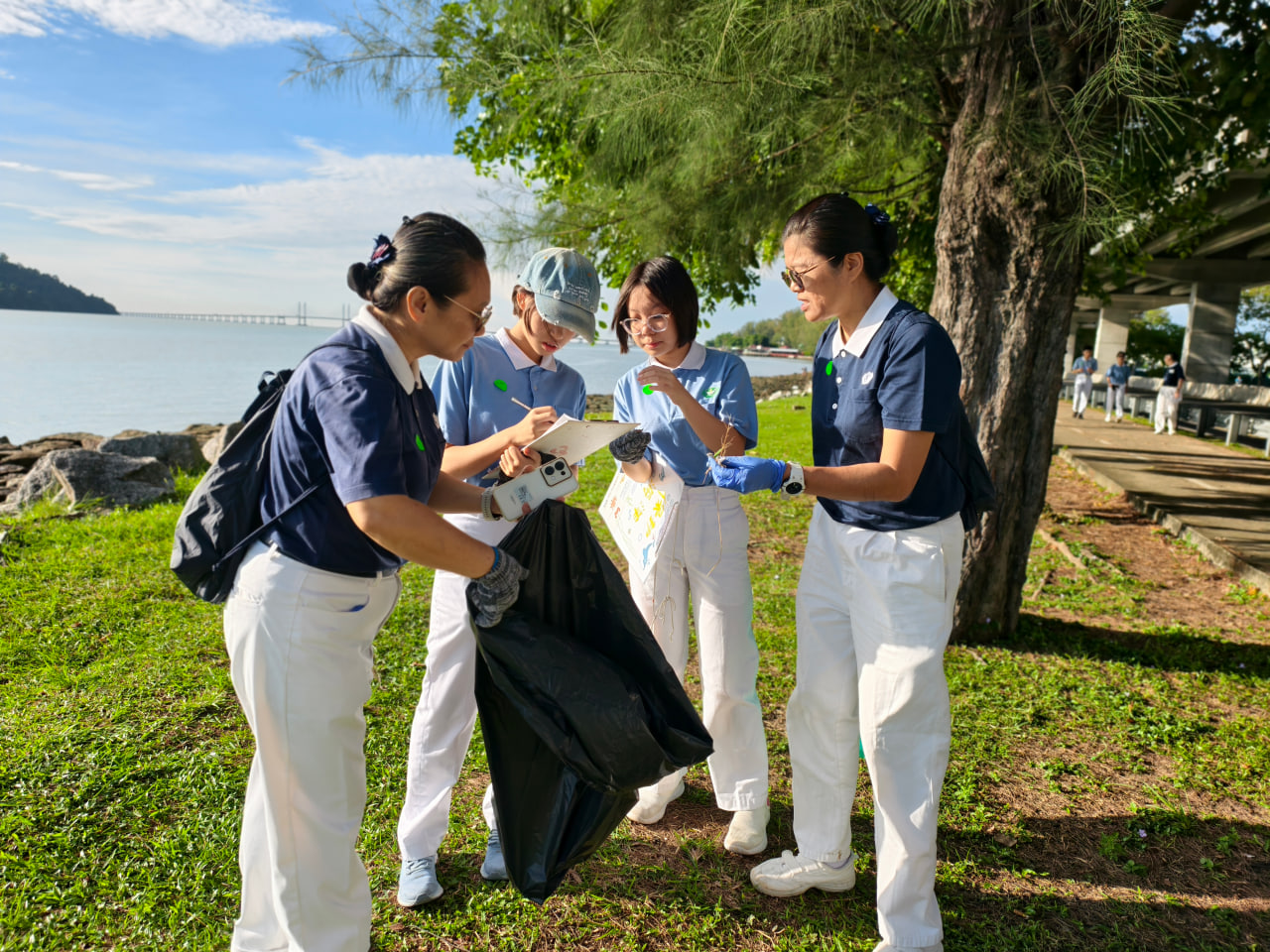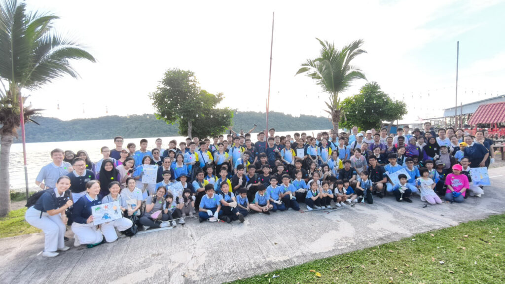 清晨時分,167位參與者陸續抵達Pantai Seagate Penang附近飲食中心,現場聚集了峇六拜校友親子、Taman Sri Nibong環保教育站志工、鐘靈獨中與SMK RTU師生、Loong Hardware職員、光華小學與崇正小學親子及多位大德。序幕揭開之際,主持人以中、馬雙語講解數據記錄事項,隨後全體共同演繹中英版手語歌《一個乾淨的地球》,以手語傳遞守護大地的信念與行動力。接著,參與者分成二十七小組,展開長達1.3公里的海岸線淨灘行動。