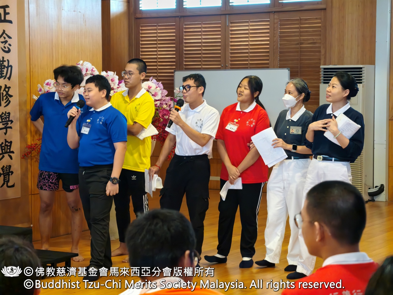 晚上,【唱歌吧·青年】在莊魏鋒老師(呆呆師伯)的帶領下,六組學員以慈濟歌曲為主題呈現小組精神:G1 布施:《人間有愛》;G2 持戒:《我的名字叫勇敢》;G3 忍辱:《迎接生命的希望》;G4 精進:《愛與關懷》;G5 禪定:《陽光眷戀的地方》;G6 般若:《路要自己走》。