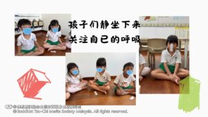 面对现代生活节奏快速、孩子常被催促的现状,曾老师依教案所教,在园所中引入瑜伽与静坐,帮助孩子学习放慢脚步、专注呼吸与当下。她认为,过于浮躁的生活会让孩子难以用心感受与思考,而静心练习正是人文教育中不可或缺的一环。