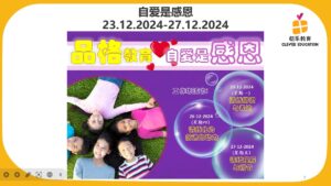 怀揣着这份信念,蔡秋霞的团队在2024年参加大爱引航之友工作坊后,于12月假期推动了三天的“自爱是感恩”主题课程。她特别感恩她的团队伙伴,将课纲严谨而用心地转化为每一个教学环节,成功将价值观传递给孩子。