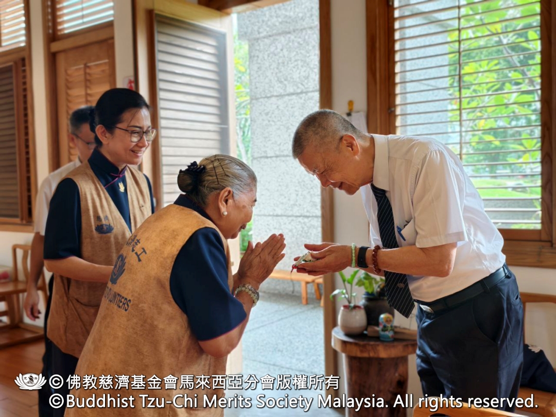 谈及因缘,他分享:“慈济的人做慈济就有大福报。有因缘接触到慈济,也是福报;没有福报,是接触不到的。”他提醒大家,只要心宽念纯、合和互协,志业便能持续蓬勃,如同槟城的慈济据点处处生机。