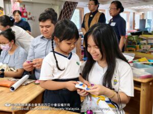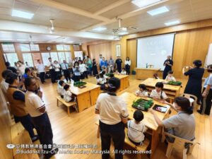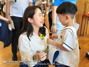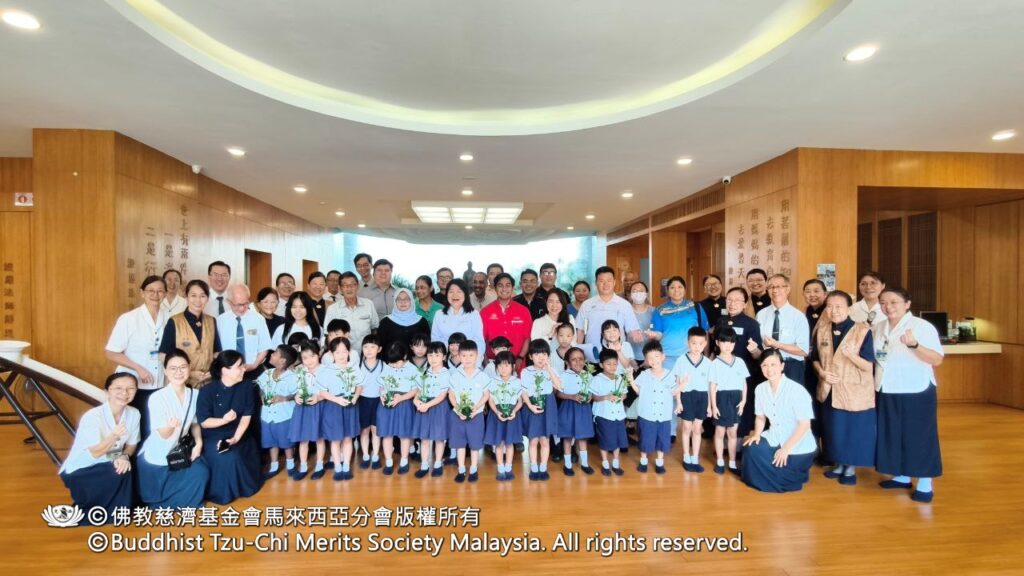 說明會後,與會嘉賓參觀幼兒園,親身感受慈濟教育的溫馨氛圍。五歲毅力班正在人文課室上花道課,六歲勇氣1班則表演手語、贈送靜思語小卡,並為訪客進行「愛的伊比丫丫」捶背服務。在大地之母前合照後,孩子們還為來賓夾上自製的花花夾子,一天的活動在孩子們溫馨的「Selamat tinggal」歌聲中圓滿結束。