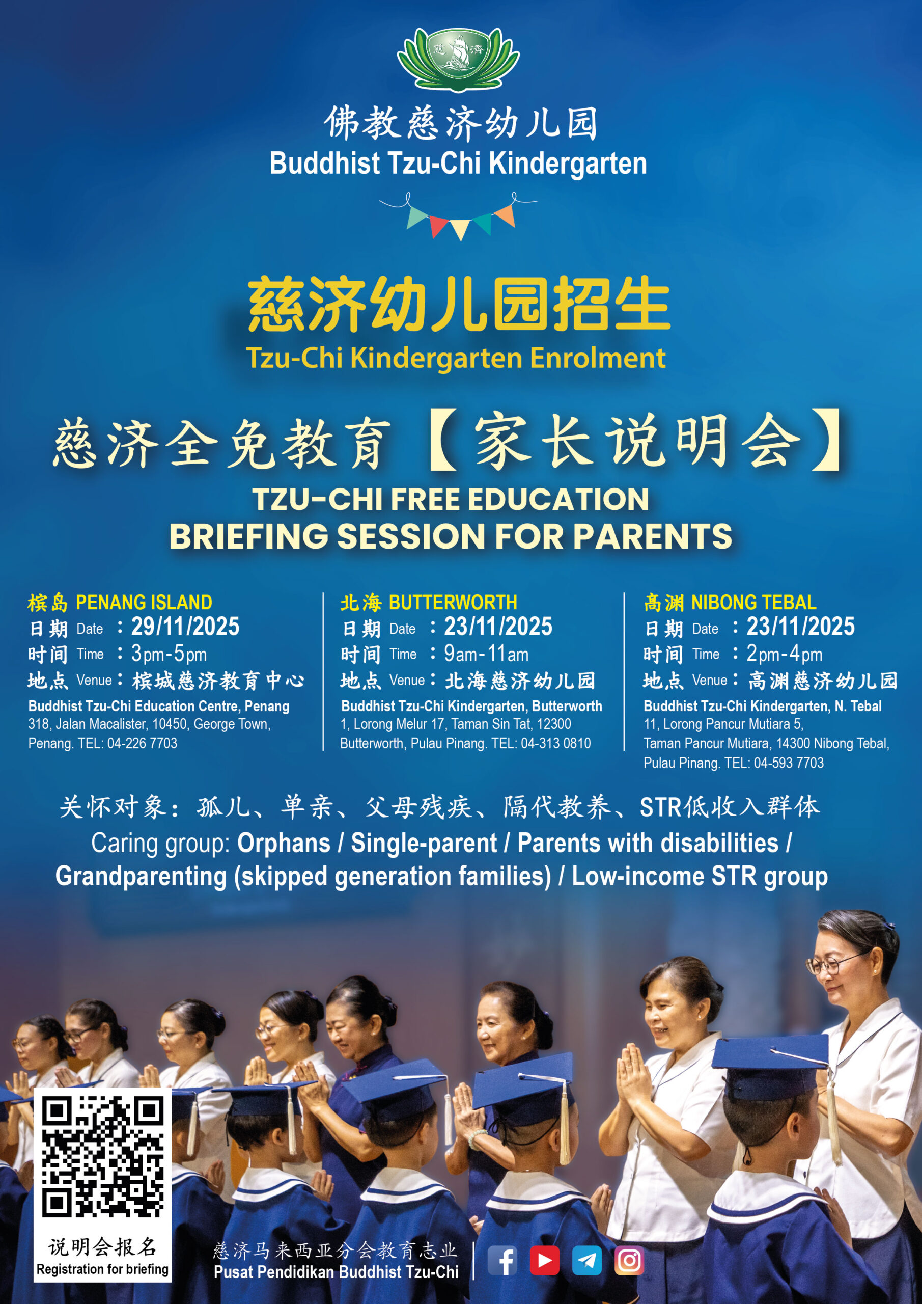 為讓更多民眾了解希望教育,慈濟將於11月23日在北海慈濟幼兒園及高淵慈濟幼兒園、11月29日在檳城慈濟教育中心舉辦公開說明會,歡迎大眾踴躍參與。活動結束前,慈濟也派發海報給各區代表,協助宣傳此善舉。