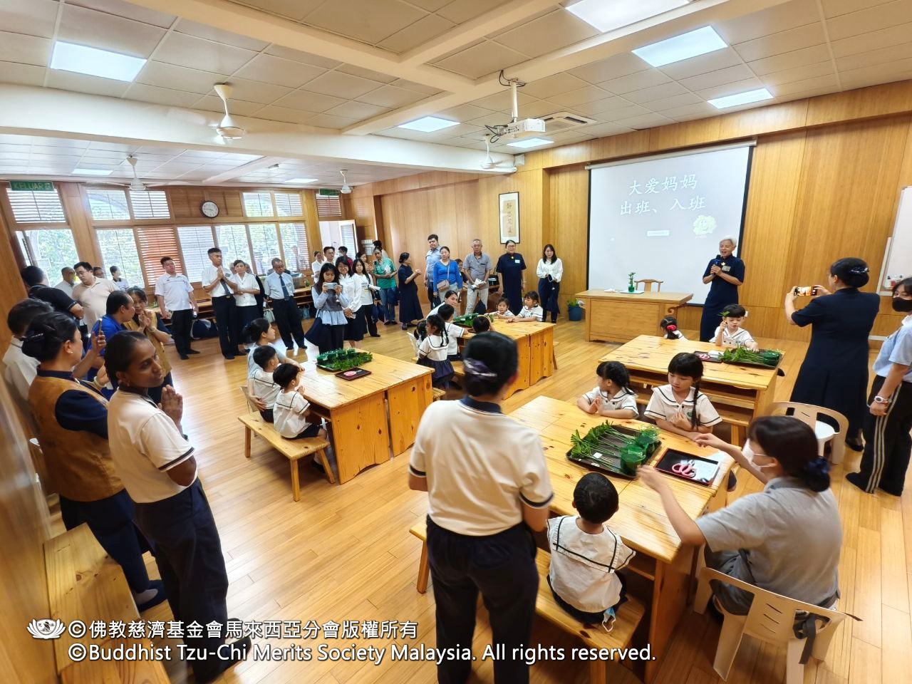 說明會後,與會嘉賓參觀幼兒園,親身感受慈濟教育的溫馨氛圍。五歲毅力班正在人文課室上花道課,六歲勇氣1班則表演手語、贈送靜思語小卡,並為訪客進行「愛的伊比丫丫」捶背服務。在大地之母前合照後,孩子們還為來賓夾上自製的花花夾子,一天的活動在孩子們溫馨的「Selamat tinggal」歌聲中圓滿結束。