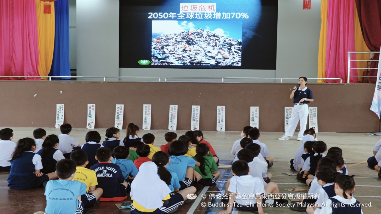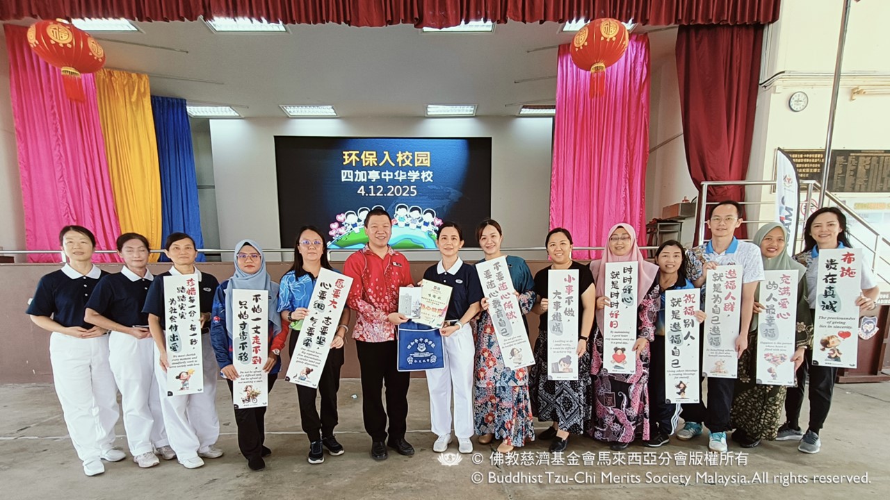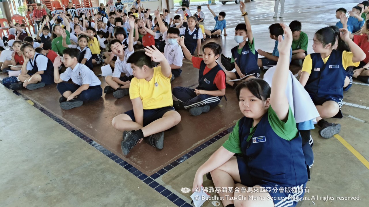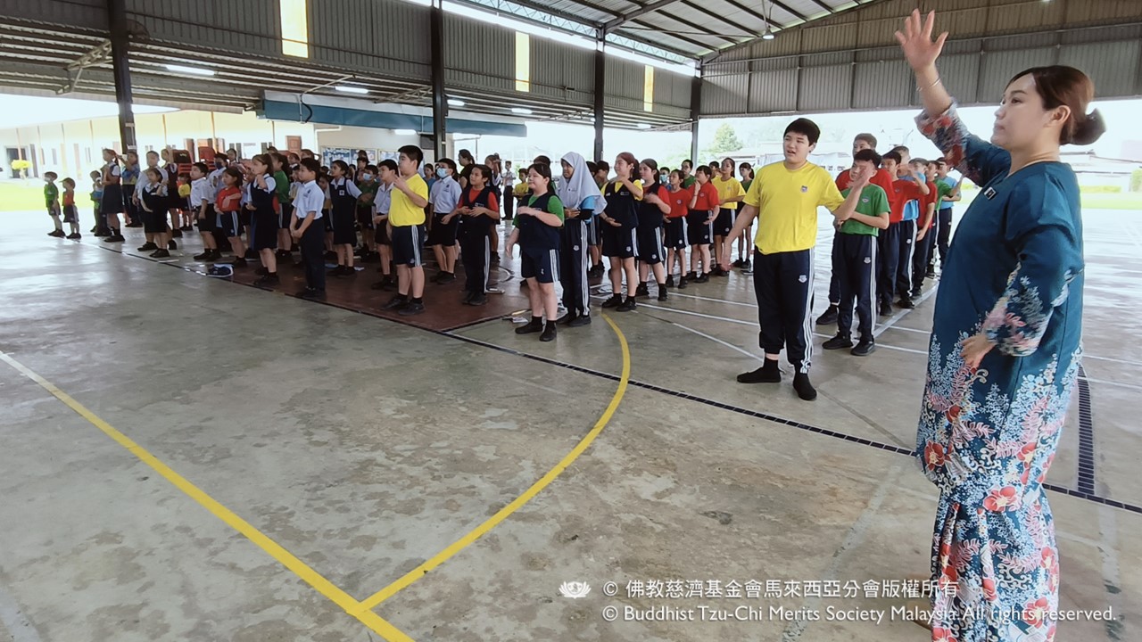 慈濟志工日前受應邀前往四加亭中華小學,舉辦環保宣導活動。活動一開始,志工即以手語歌帶動全體師生。在志工的熱情引導下,無論是老師還是學生,大家都努力地跟著節奏,邊唱邊比。