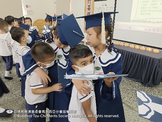12月4日,北海慈濟幼兒園為即將畢業的十四位六歲班孩子舉辦了「傳承日」活動。現場,六歲班哥哥姐姐將手中象徵愛與責任的心燈交給五歲班的弟弟妹妹,並送上溫暖的擁抱,叮囑他們:「上課要聽從老師教誨,與同伴和睦相處、相親相愛、互相幫助。」叮囑間,滿是對後輩的殷切期許。