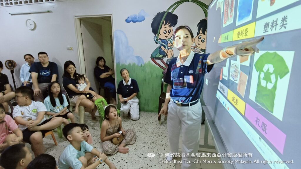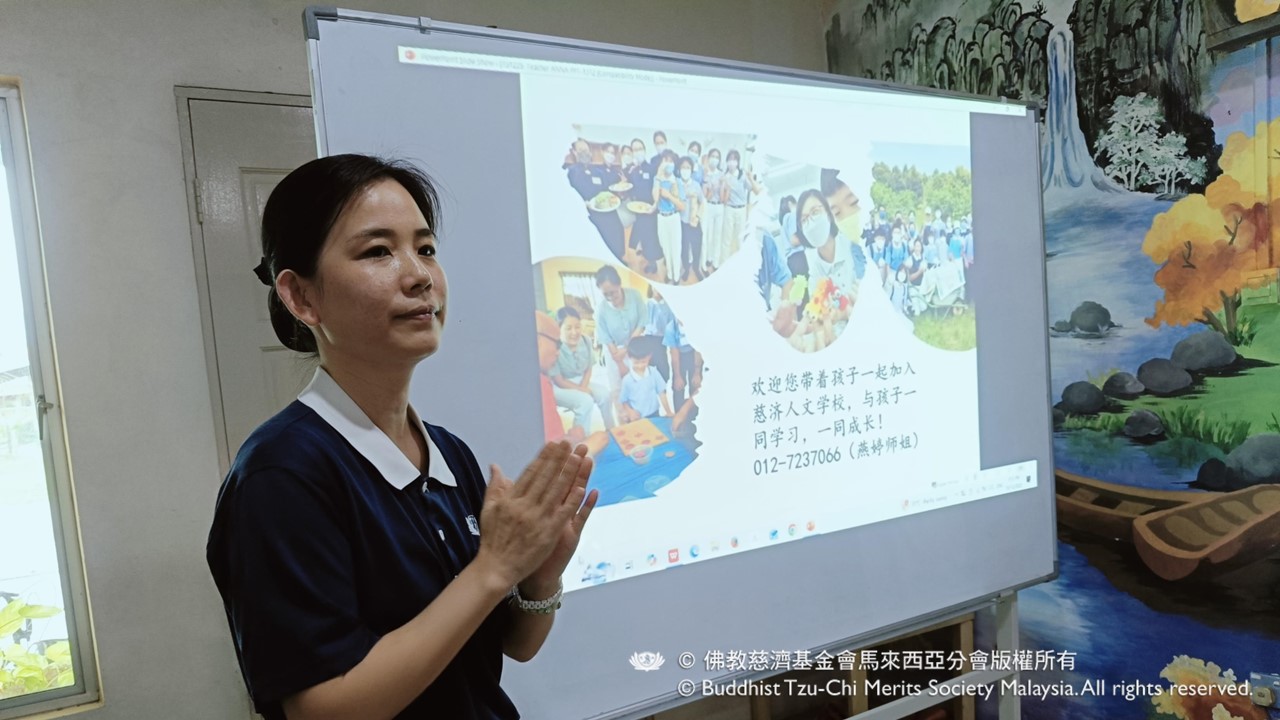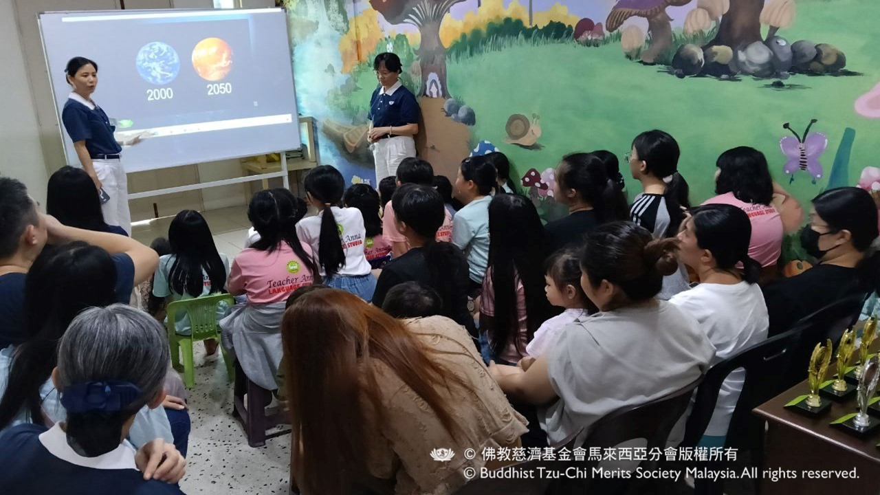 應顏雅蕊師姐的誠摯邀請,慈濟環保教育團隊走進由她開辦的安娜老師日托中心(Teacher Anna Daycare Centre),為孩子們和家長們帶來了一堂別開生面的環保宣導活動。雅蕊師姐坦言,盡管平時對孩子們多番叮嚀,但發現孩子們仍常將資源誤作垃圾丟棄。她深感個人力量有限,唯恐孩子們缺乏持續的動力,遂希望借助慈濟環保入校園團隊的助緣,在中心結業禮的殊勝因緣下,為家長與孩子們帶來不一樣的環保視角。志工陳燕婷師姐將環境保護理念通過圖文及短影片,深入淺出地講解我們周邊的環境污染的情況,並講解了愛護地球的方法,引導家長及孩子們認識環境保護的重要性。為了讓知識“活”起來,雅蕊師姐設計了“釣資源”游戲。在游戲中,孩子們需要從“垃圾”中釣出可回收的資源。通過這個有趣的“釣魚”環節,孩子們將剛學到的知識迅速轉化為實際行動,認真辨別如塑料瓶、紙張、鋁罐等可回收物品。此外,雅蕊師姐還准備了回收的紙皮,讓孩子們親手制作屬於自己的**“幸運大轉盤”**,將廢物利用的理念融入創意手工。愛地球不只是一句口號,而是要從自己做起,孩子們不只是可以被大人們被長輩們帶著做,他們其實也可以成為一個引領的角色,將所知所學的環保知識,與家人朋友分享,從日常生活的點滴小事開始,共同為地球盡一份心力。雅蕊師姐每年都努力接引家長認識慈濟人文學校。此次,她也把握住環保活動入中心的因緣,特別邀請志工分享了慈濟人文教育的特質。藉由分享,讓家長們知道教育需從根本開始,慈濟人文教育旨在啟發人的“良能”,成就身心健全的完整人格。課程涵蓋了靜思語教學、親子課程等,讓孩子從靜思語中學習正確的價值觀和人文品格。同時,也希望借由靜思語教學,拉近親子間的關系,在孩子心中播下善的種子,期盼家長成為孩子生命中的貴人,用心陪伴孩子成長。