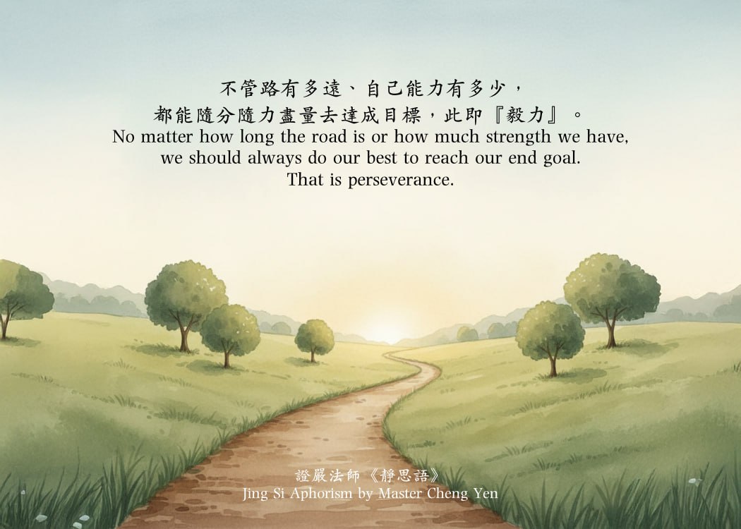 「不管路有多遠、自己能力有多少,都能隨分隨力盡量去達成目標,此即『毅力』。」—— 證嚴法師《靜思語》