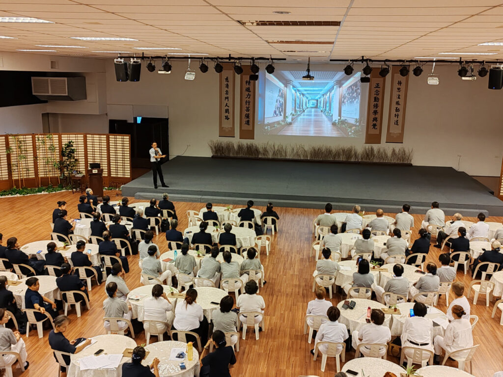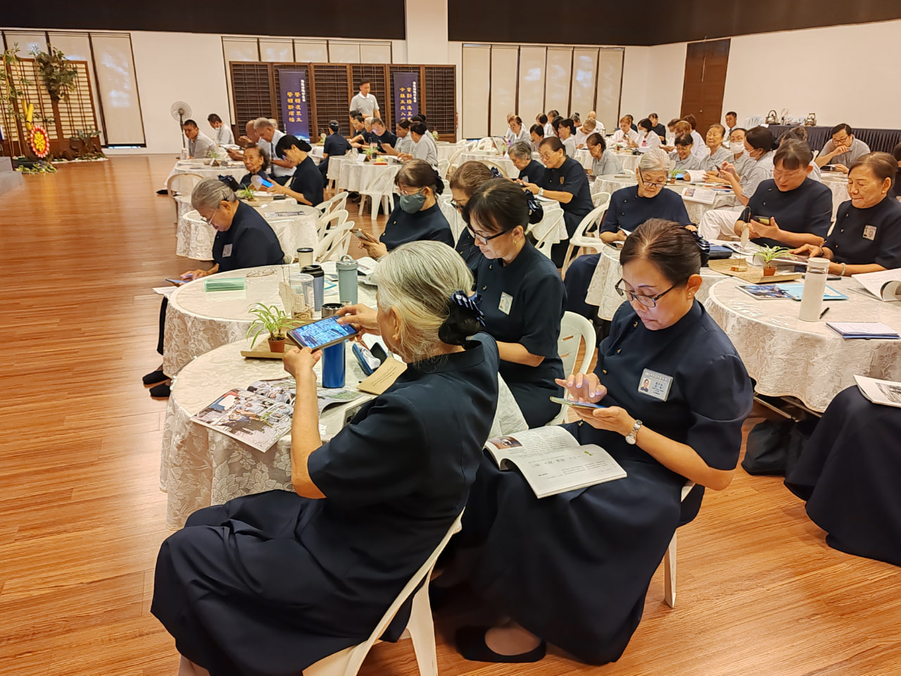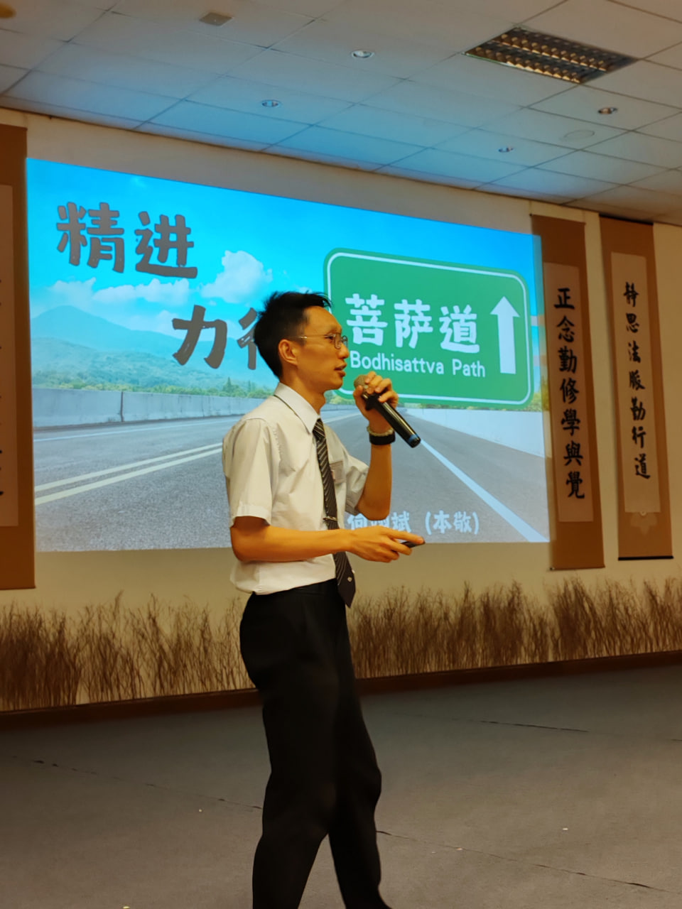 主題課程「精進力行菩薩道」由何翊斌(本敬)醫師帶出,他分享了上人鋪下法華經的過程,和現今海外及這裡處處可見的真實菩薩行,鼓勵大家不管路有多遙遠,大家都要堅持下去。何醫師是一位老年醫學科專科醫師,他分享了「病弱期壓縮」,希望人人能延長健康慢老的時段,減少病死的過程。我們不能決定生命的長短,但我們可以選擇讓自己活得更有意義,所以上人總是期許大家,要生生世世行菩薩道。
