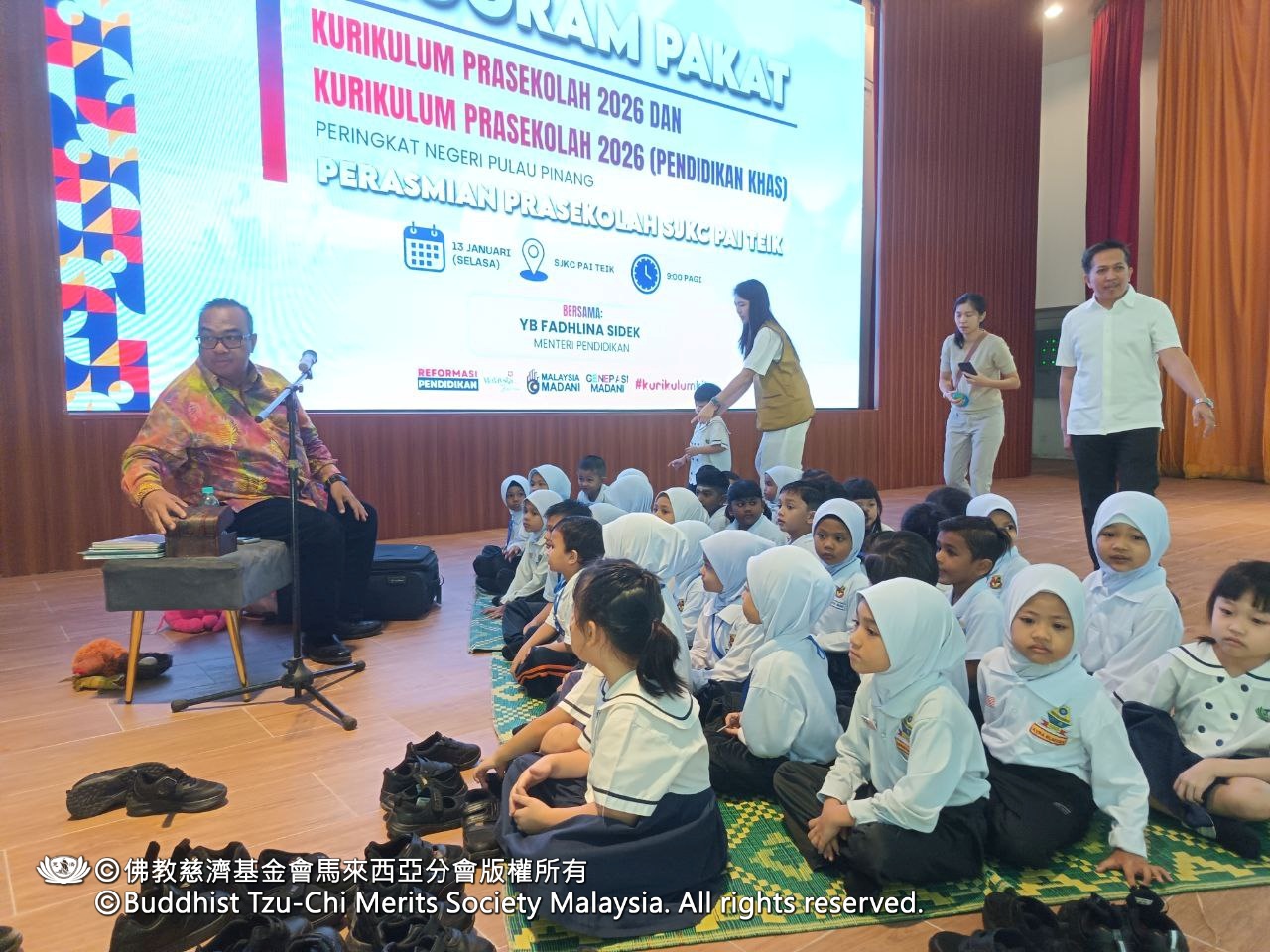 由马来西亚教育部主办的“2026学前班及学前课程(特殊教育)新课纲(PAKAT)”巡回发布会,于1月13日在槟城高渊培德华小举行。高渊慈济幼儿园荣幸受邀,成为活动现场的课程展示单位之一,呈现富有教育意义的环保实践课程。