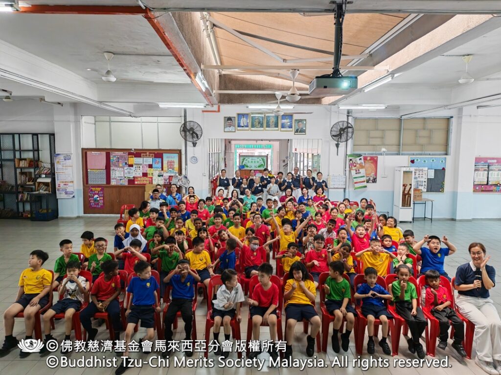 活动伊始,师生一同观赏慈济大藏经影片,透过影像了解慈济一年以来推动的善行与大爱足迹,在孩子们心中悄然播下行善与关怀的种子。