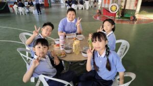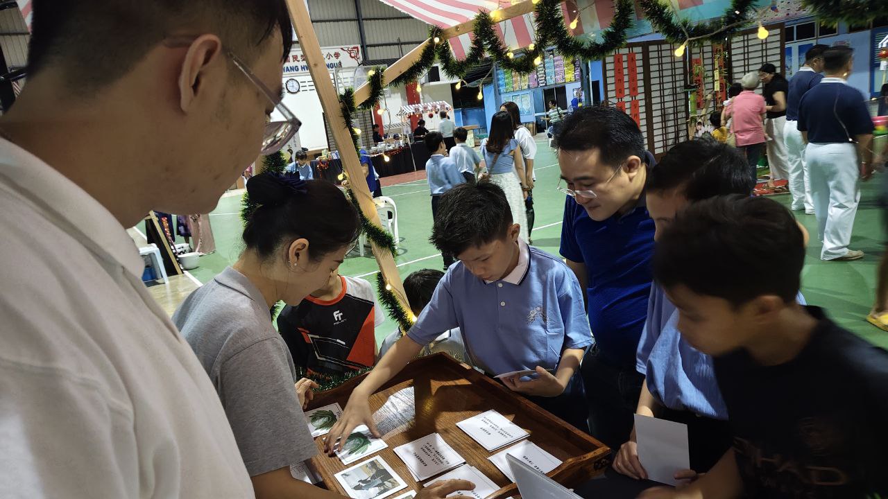現場特別規劃素食區,準備多樣繽紛的素食餐點,推廣健康飲食理念;同時設有六個遊戲攤位,透過集印章方式,引導親子互動,在結緣中傳遞慈濟精神。志工、人文學校家長與慈青們各司其職,無論是推廣素食、照顧孩童、維持秩序或臨時支援,都展現團隊合作的力量,也呈現老、中、青三代攜手同行的動人畫面。