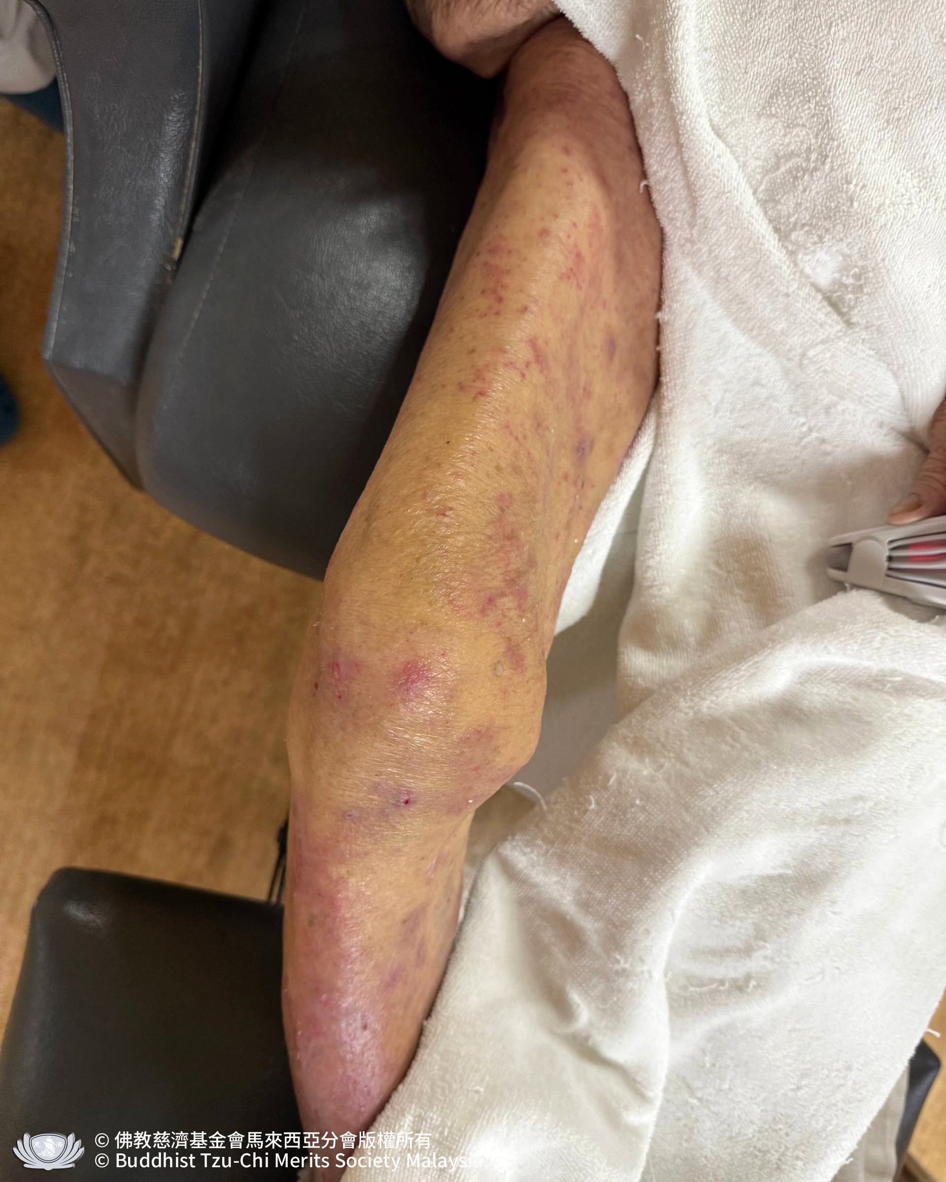 86 歲的腎友 Y 阿嗎,因皮膚嚴重乾燥及身上留置導管,近半年來無法自行洗澡,只能日復壹日地擦拭身體;那些洗不淨的體味與紅疹,像是甩不掉的負擔,伴隨著她照顧孫兒的疲憊,身心負擔不輕。