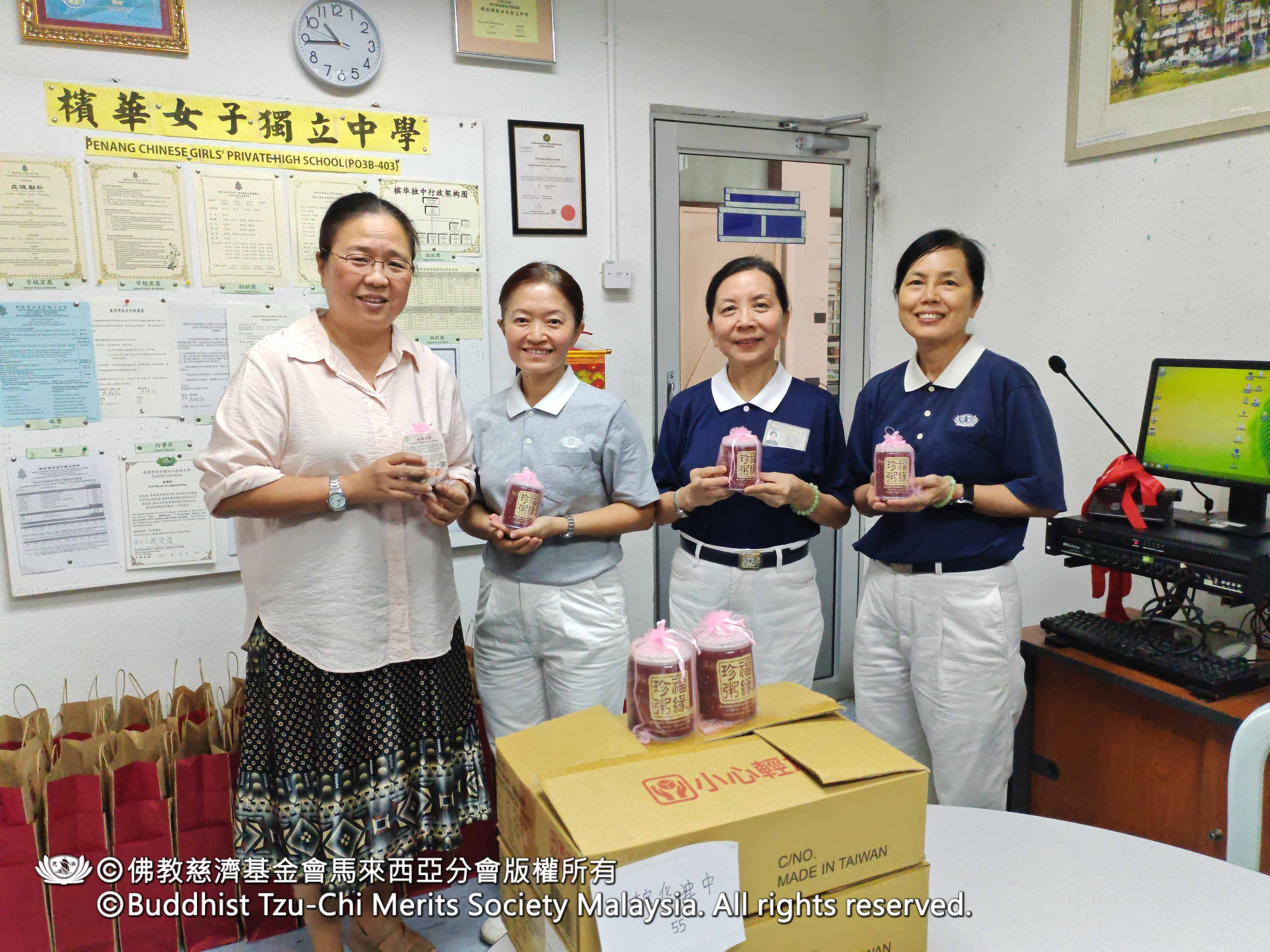2026年2月3日,槟城慈济志工于新春前夕展开“校园新春送爱”活动,分别于槟城及威省两区,为123所学校(含中小学、幼儿园与安亲班)的教职员,送上总计超过3,000份的“福缘珍粥”结缘品,传递感恩与新年祝福。