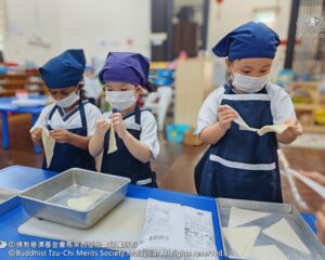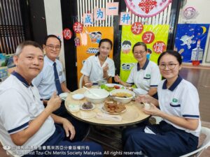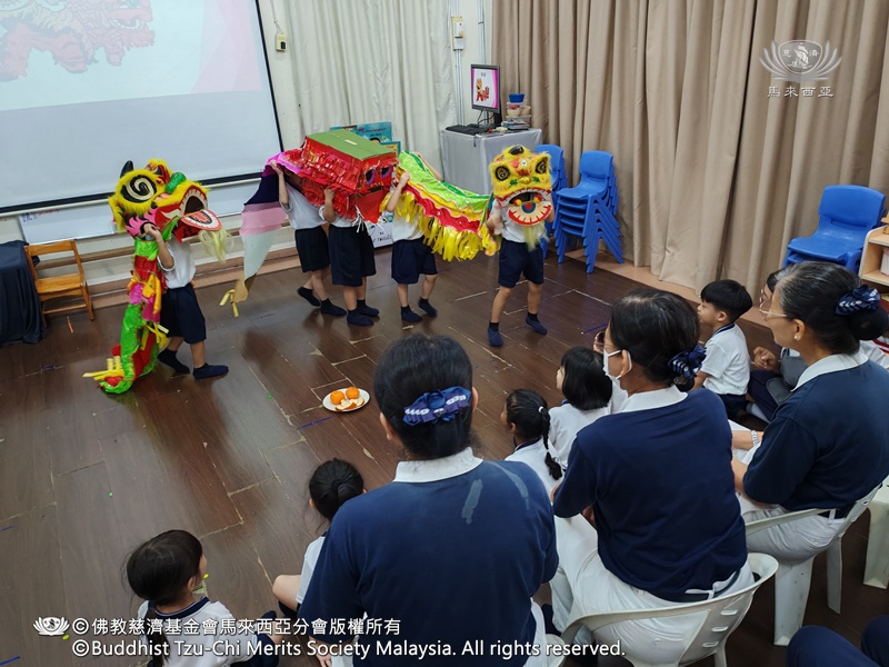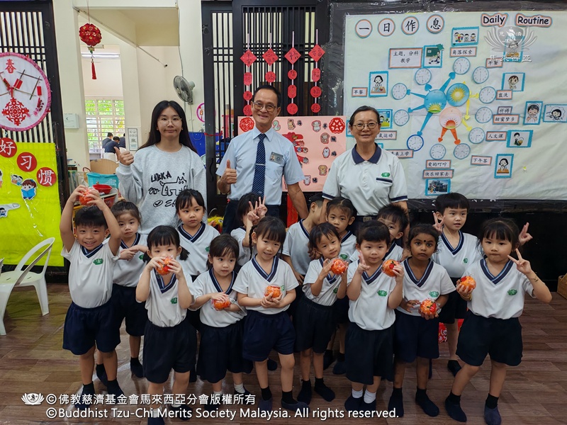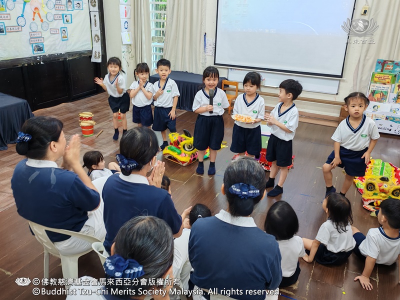 曾慈规主任引导孩子们,要怀着感恩的心享用的团圆饭,并用虔诚的心祝福天下每一个人都能温饱、平安健康。并以师太上人教诲, 【莫忘竹筒岁月初心】,鼓励孩子将一小部分的红包投入竹筒,帮助苦难的人。