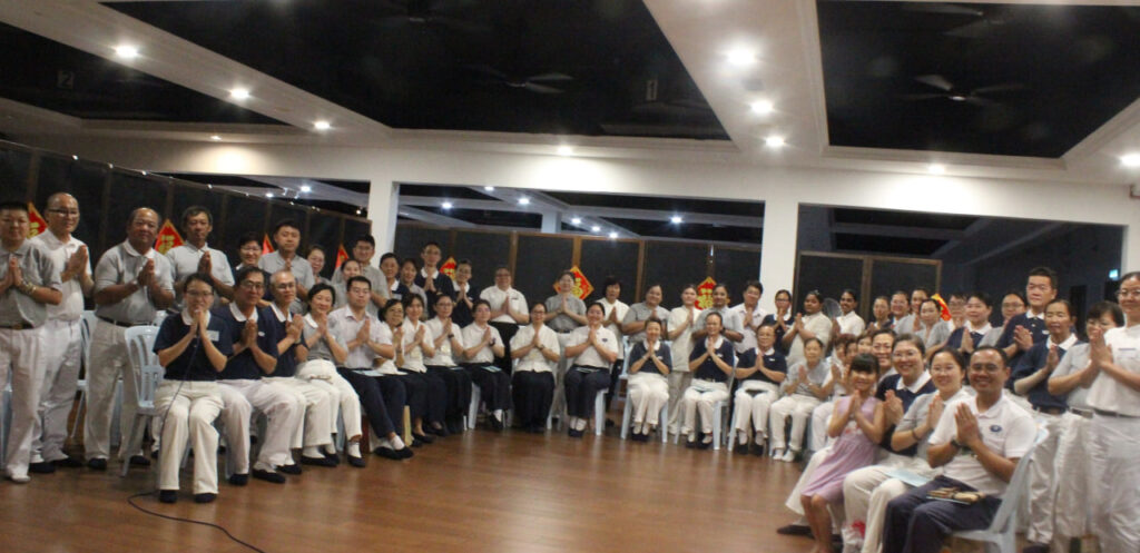 當晚的司儀佩蓉師姊歡喜迎接大家的到來,並邀請二月生日的組員們出列,大家一起為他們慶生。撈生環節,合心團隊和組長們帶領大家一同撈生。每一撈都帶著滿滿的新春祝福。首次以新和氣區身份見面的志工們,皆是歡喜一同用餐、結識新朋友。用餐後,大家根據各自的組別聚集在靜思堂小齋堂。