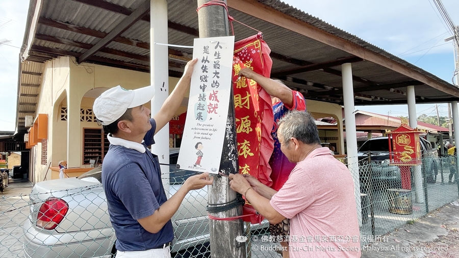 靜思語20260301_峇株巴轄石文丁掛靜思語看板 01 Mar Community: mybpBranch: 馬來西亞分會攝/玉梨(慮光)、秀娟(慈岸) 農曆新年之際,7位慈濟志工與慈少走入峇株巴轄石文丁漁村,沿街更換40幅充滿智慧與啟發性的靜思語看板,讓一句句好話走入漁村的巷道。 村民也主動加入張掛行列,齊心協力更換舊看板,以實際行動傳遞善念與正能量。 志工願大家在新的一年、新的氣像中,讓這座美麗的旅遊漁村,不僅風景動人,更處處可見善言好話;讓每一位走過的人,都能因一句好話而心生歡喜、心向光明。 返回上一頁 20260301_吉打佛教慈济安心班【大爱红包】 20260303_公民一校人文课 元宵节 搓汤圆