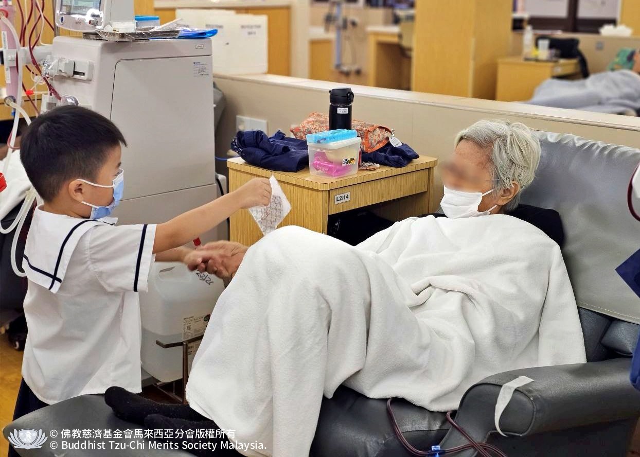 看著小小身影在中心裡穿梭,有的靦腆微笑,有的輕聲說著新年快樂。原本安靜的洗腎室,因為這群小訪客的到來,瞬間充滿了生氣。無論是腎友、護理團隊還是志工,看著孩子們天真的臉龐,大家臉上也不自覺綻放出笑容。