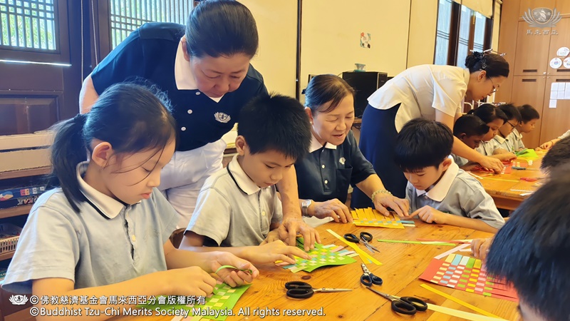 吉打慈济安心班迎来了开斋节文化体验课,从认识到体验、手工到美食,第一节课,就是用双手编织出属于自己的文化作品——手工草席。感恩志工们前来支援与付出,在温声细语中循循善诱,让每个孩子都能在互动中感受文化的美好与人情的温暖。