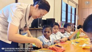 七岁的苏玄航平日较少动手,都很依赖哥哥们的协助。这一天,在文莱师姑的陪伴及鼓励下,他学会了专注与坚持,不依赖、不退缩,安住当下走完整个过程。
