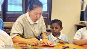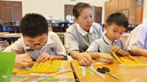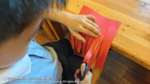 施老师不急不徐地陪伴着七岁的陈奕勳,步步引导,在剪刀起落间伴随着提示与笑语,让原本颤抖的小手渐渐安定。完成手作的那一刻,不只是作品的呈现,更是一场建立自信心的成长足迹。