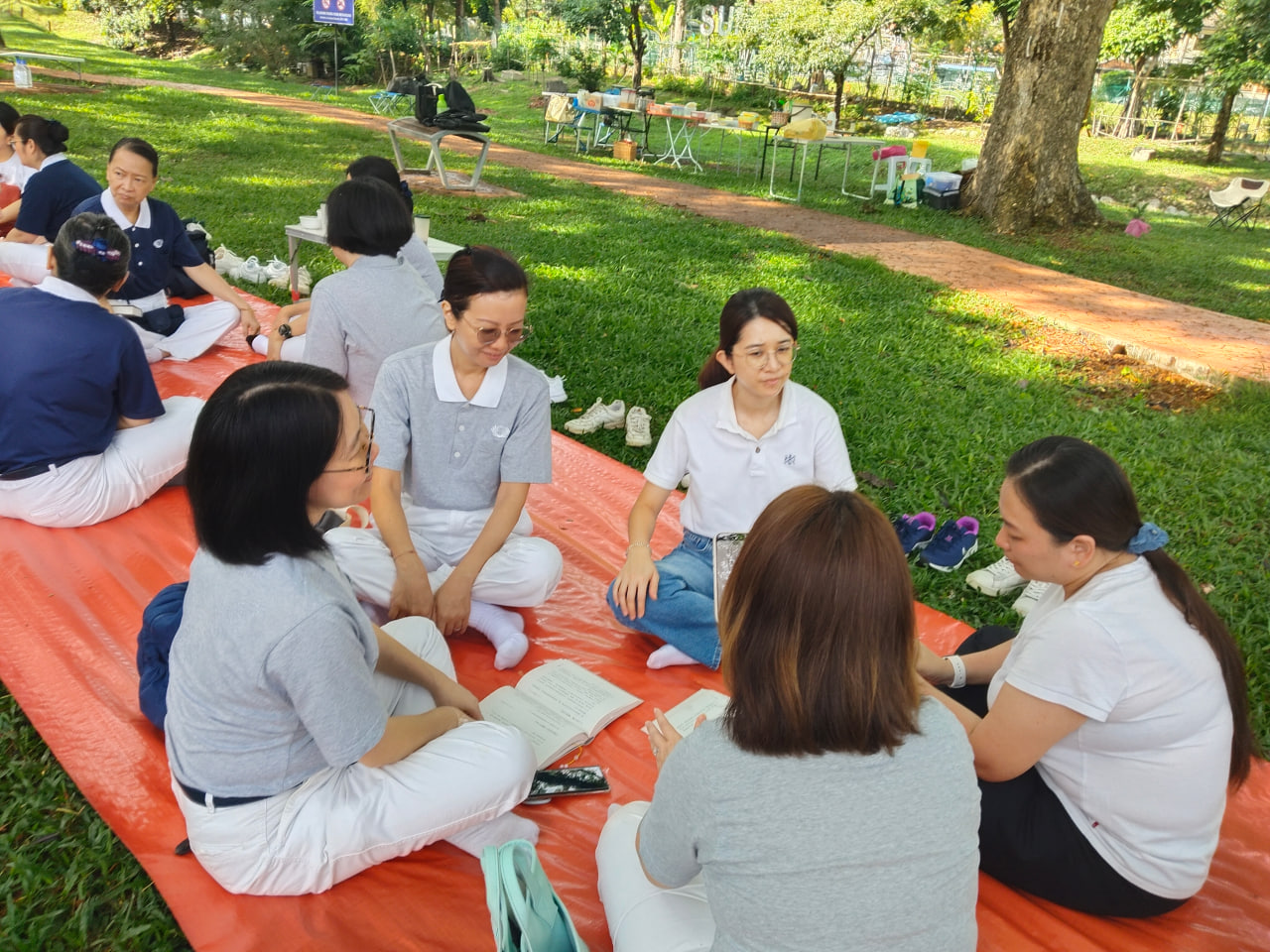 家長班在大地上進行《解惑二》品書會,透過閱讀與討論,分享彼此的人生體會與學習心得。