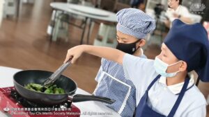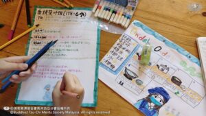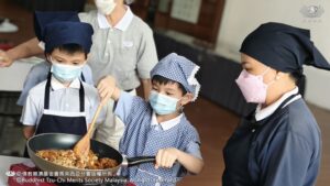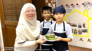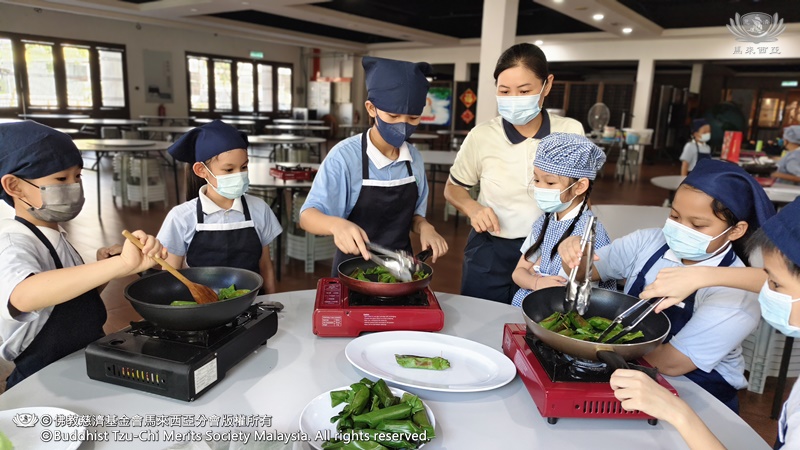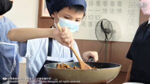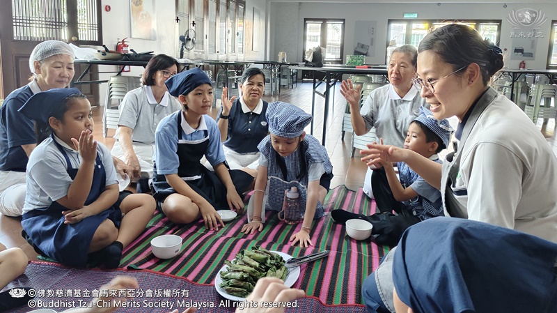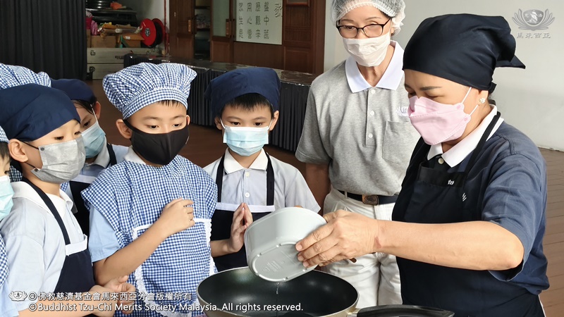 李承羽及张志仁都不约而同的认为,原来他们所熟悉的素香松拿来炒,会是那么好吃。原来香积饭除了是米饭,还可以做成糕点。帮忙准备香蕉叶的尤柔渝和郑博轩分享,看起来很普通的香蕉叶,处理起来一点都不简单。最后煎烤糕点时,戴璟喆因为不小心碰到热锅的边缘而烫伤。这令他想起爸爸、妈妈和奶奶每天不厌其烦的为家人煮饭,原来是很辛苦。看到人文团队的师姑们,用自己的休息时间来陪伴他们、教导他们,孩子们都心存感恩心。