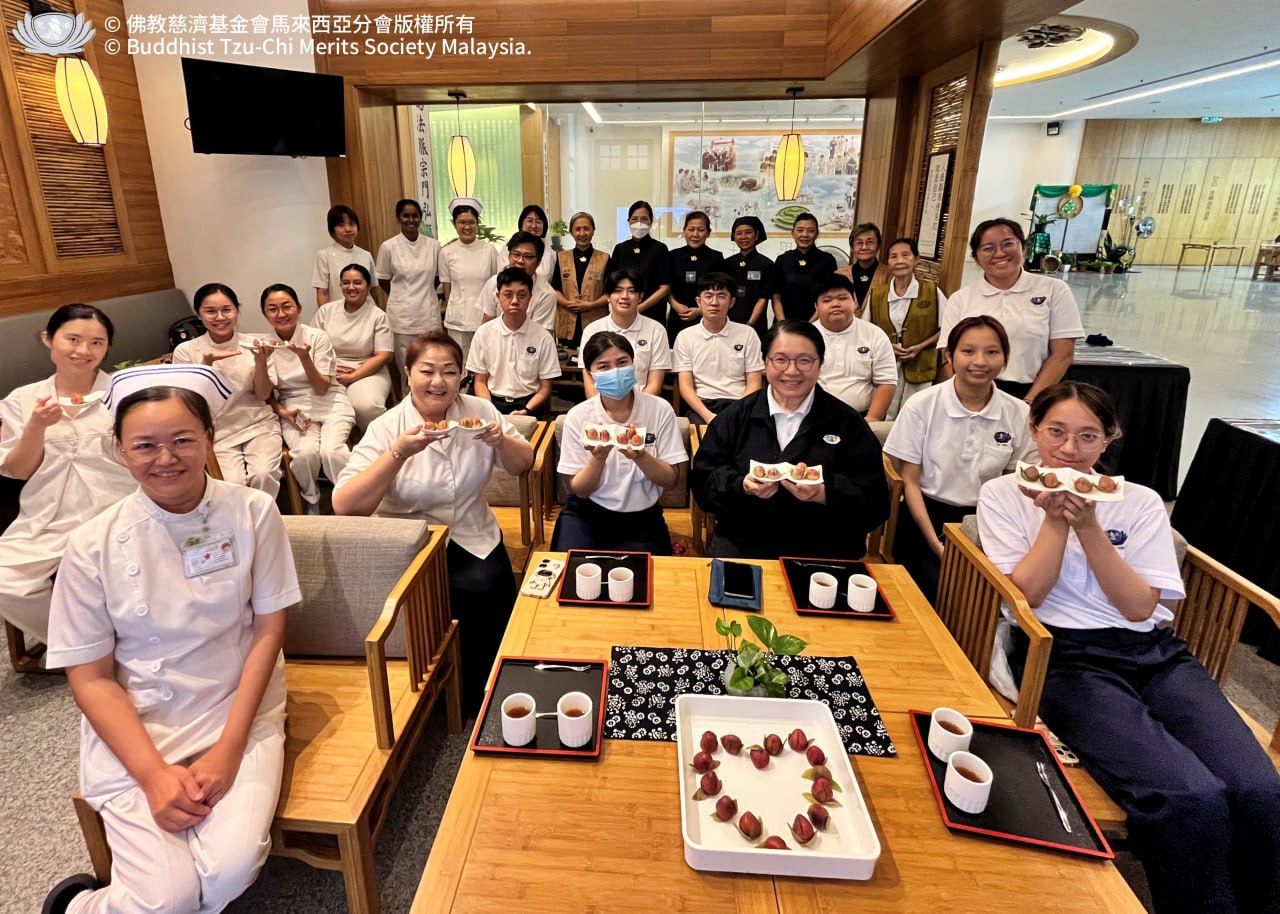 為迎接慈濟週年慶,誌工帶領同仁用淨斯產品動手做靜思壽桃!大家在誌工細心的指導下,在歡笑中捏揉麵糰,開心展示可愛的成品。這不僅是提前慶祝,更期盼透過手作推廣健康茹素,將滿滿祝福包進美味中。