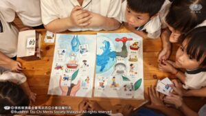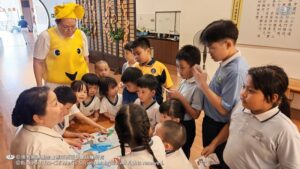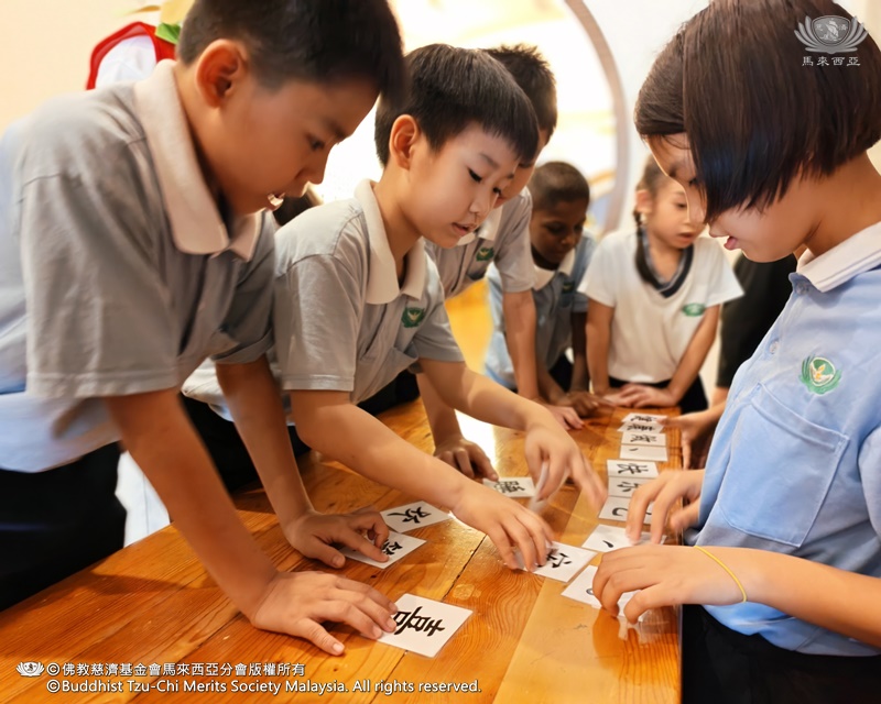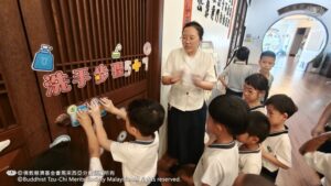 从照顾自己做起,进而关怀他人,落实在日常中培养清净身行。引导孩子体会“水是大生命”,学会惜水、护水,让感恩之心在点滴中滋长。安心班的哥哥姐姐们以身作则,透过拼读卡牌朗读静思语,一字一句中将护生环保的种子深耕入心。